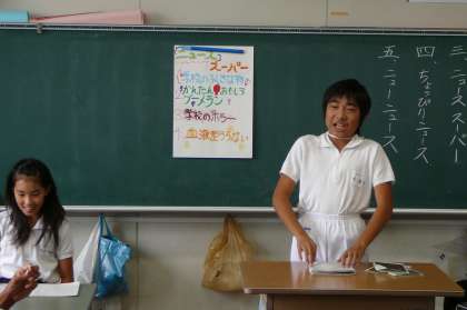 国語「ニュース番組をつくろう」では、グループごとに身近な話題を取り上げ、テレビ番組さながらに発表しました。効果音楽を使い、盛り上げながら楽しく行いました。