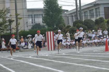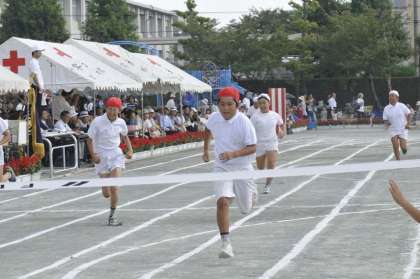 待ちに待った運動会。さわやかな風に吹かれて、運動場をかけぬけました。力を出し切って、100m走、騎馬戦、組立体操とがんばりました。