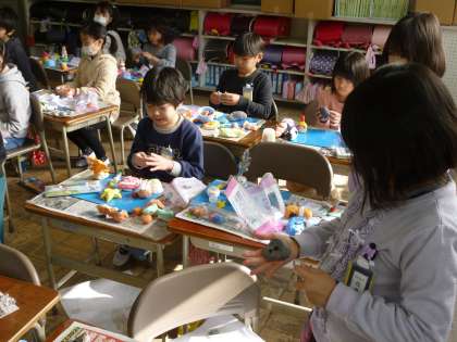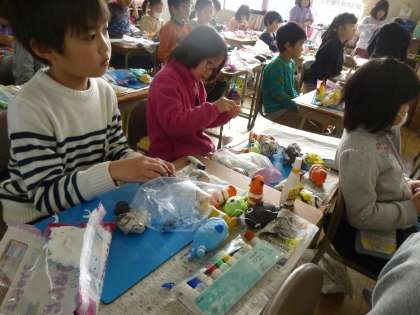 水族館の中に入れる魚などの生き物が少しずつ完成してきました。色鮮やかな粘土がとてもきれいで、水槽の中につるして揺れる様子を早く見たくなりました。