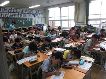 上:1組は国語のローマ字の学習をしています。小さい「や・ゆ・よ」の表記の仕方について勉強しました。