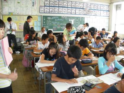 今日は、1年生で道徳、6年生で算数の研究授業を行いました。先生もお互いに授業を見合うことで、より分かりやすい授業の進め方や子どもたちの意見を引き出す方法を学び合っています。