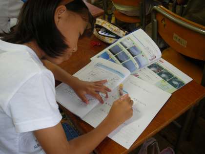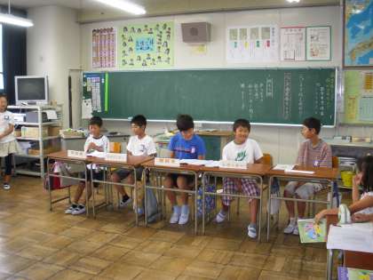 中:2組は国語の「ニュースを伝え合おう」のグループ発表を行いました。取材した内容を表にしたり、劇にして出来事を伝えたりするなど、それぞれ伝え方を工夫した発表ができました。