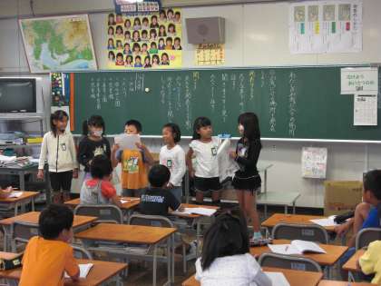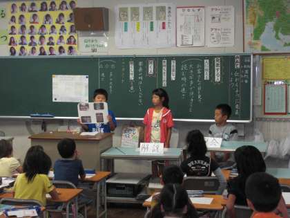 中: 2組は国語の学習で「お気に入りの場所」をグループで発表しました。意欲的に発表出来ました。