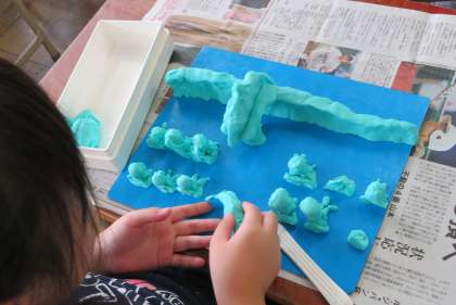 2学期の思い出を粘土で表しました。遠足、運動会、学芸会、リズム縄跳び、それに、さつまいも掘りなど、いろいろな行事や学習がありました。みんな楽しそうに取り組んでいました。