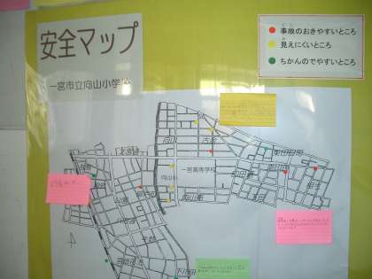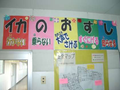 校内には、登下校中の危険な場所について「安全マップ」としてみんなにお知らせしています。「い・か・の・お・す・し」を守って、楽しい冬休みを過ごしてください。