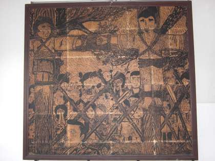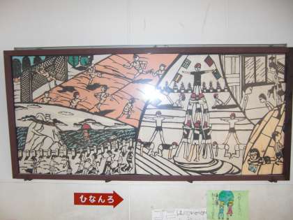 校舎内には、いろいろな行事の写真や児童の作品などが掲示してある。その中に、以前共同作品として作られたであろう力作が展示してある。ここにも、本校の伝統を感じる。