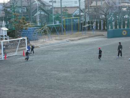 新年を迎え、サッカー部は今日初練習を行いました。子どもたちは、寒い中、一生懸命パスの練習やシュートの練習をしました。子どもたちの元気のよい声がグランド中に響きわたっていました。