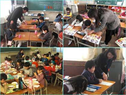 今日から給食がスタートしました。今日のメニューは京都風お雑煮でした。たくさんおかわりできました。