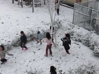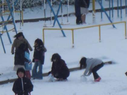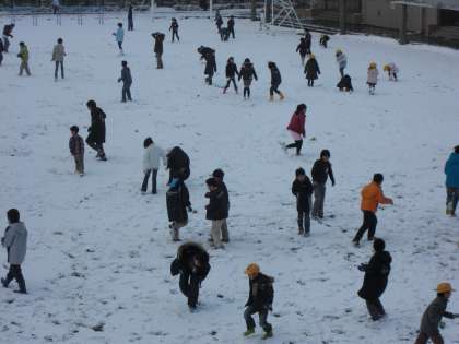 子どもたちは、中間放課に雪遊びを楽しみました。雪が降ったときにしかできない遊びです。雪と十分戯れ、本当にうれしそうでした。