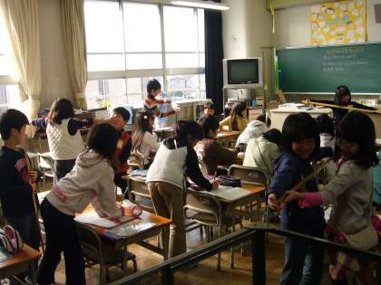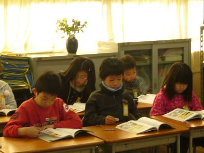 中:道徳で「ノートのひこうき」の物語から、物の大切さを考えました。(2組)