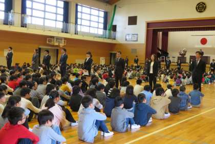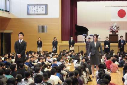 新任式に続いて始業式が行われました。それぞれ一つ学年が上がったことを意識して、とても良い姿勢でお話を聞くことができました。担任の先生の発表の時には、どの子の顔にも、新しい先生との出会いの喜びが満ちていました。
