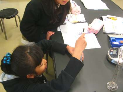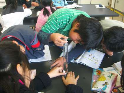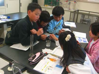 理科「もののとけかた」の学習で、メスシリンダーの使い方を練習し、『食塩は、かぎりなく水にとけるだろうか?』の実験をしました。