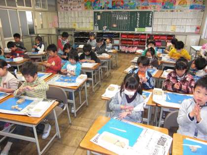 1.28 図工「ねんどでたしざん」をしました(1年3組)