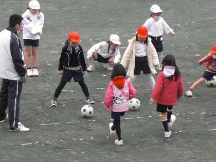 ボールをけって、相手の股を抜くことができるかな。正確なパスが出せるように練習をしました。