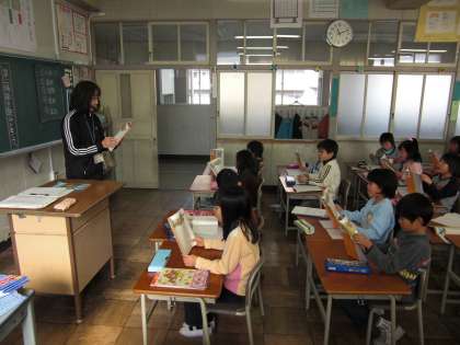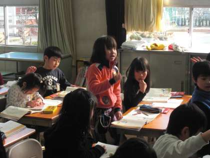 (中)国語:2組は、かさこじぞうの第2場面の読み取りと音読をしました。