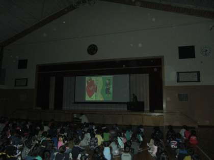2.8 児童朝礼 公開日 2010/02/08 更新日 2010/02/08 学校ニュ−ス 今朝の児童朝礼は、読書週間中ということで、校長先生の読み聞かせがありました。民話「だいくとおにろく」です。絵本の絵を映しながらのお話でした。子どもたちは、一生懸命聞いていました。