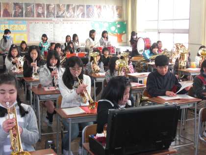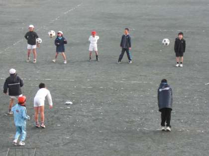 ロードレース部の練習が終わり、今日は、サッカー部、ミニバスケットボール部、金管バンド部の練習がありました。寒さに負けず、一生懸命練習しました。
