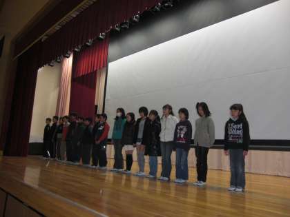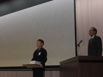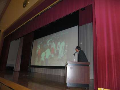 今朝の児童朝礼では、最初に善行児童の表彰がありました。続いて、先日行われた一宮市民ロードレース大会に参加した本校児童の活躍の様子が、ビデオで紹介されました。そして、大会に参加した児童の健闘をたたえて大きな拍手をおくりました。