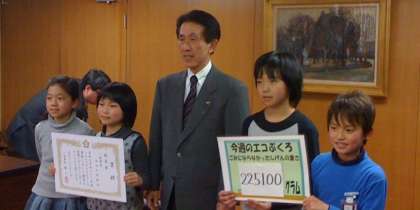 4年生が中心となって取り組んでいる「エコスクール活動」が優秀であると認定を受け、本日一宮庁舎にて「優秀校」として谷市長から表彰していただきました。