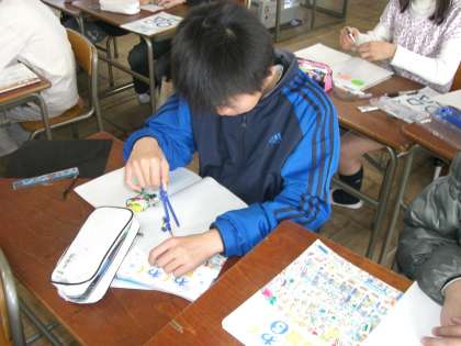 5−3:算数「正多角形」 正六角形の性質を利用して、コンパスを使って正六角形の作図練習を行いました。