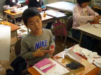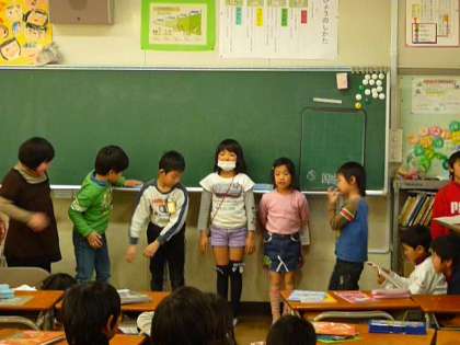 2組(中):国語の時間にかさこじぞうの音読劇をしました。