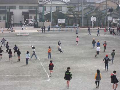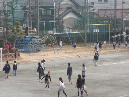 今週の週目標は、「放課は外で元気よく遊ぼう」です。一昨日、運動場にまかれた防塵剤もすっかり溶け、放課に元気よく遊ぶことができました。