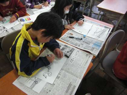 できるだけ体の長い蛇を描くことをめあてに、ゆっくり丁寧に線をかきました。体の重なりにも気をつけて描きました。