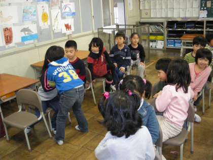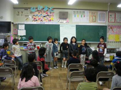 12月から3か月間、1年4組の副担任としてお世話になった高木先生が今日で最後となりました。そこで、子どもたちが中心となってお別れ会を開いてくれました。ゲームや出し物などで楽しんだ後、先生に手紙を渡したり、最後のお話を聞いたりしました。高木先生ありがとうございました。これからも明るく元気な4組で、がんばっていきます。