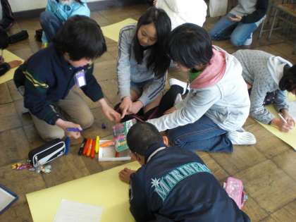 3.11 「縦割り班まとめの会」の準備(5年) 公開日 2010/03/11 更新日 2010/03/11 5年 3月15日(月)に行われる縦割り班まとめの会に向けて、プログラムづくりや司会進行の練習を進めています。