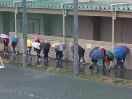 今日は、雨の中での下校となりました。明日は修了式です。机の中の物を全部持ち帰りました。