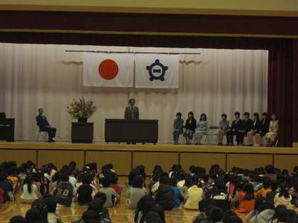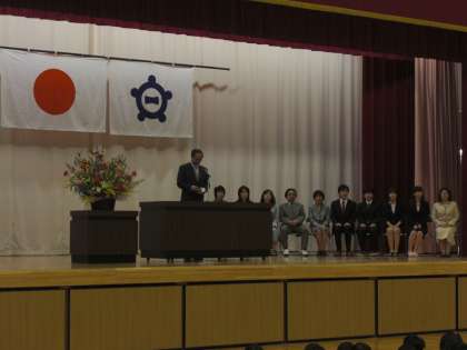 新しく向山小学校にみえた10名の先生を紹介し、あいさつをいただきました。
