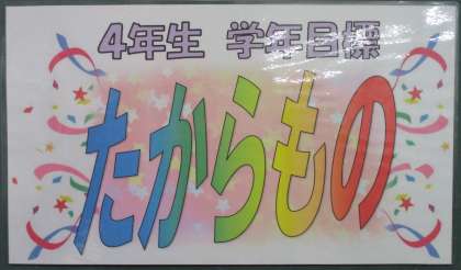 4年生のみなさん、元気にしていますか。先生たちも4年生のみんなに会えるのを楽しみにしていましたが、学校が始まったと思ったら休校になってしまい、みんなに会えなくてさみしく思っています。そこで、今日はいくつか伝えたい内容のうち学年目標について、詳しくお伝えします。今年の4年生の学年目標は「たからもの」にしました。3年生では、「たからじま」に上陸したみなさん。その「たからじま」で今年はみなさん一人ひとりに「たからもの」を探してもらいたいと思っています。来年からは高学年の仲間入りをする4年生。「10歳」という節目の年を迎える4年生。この先どんなことがあっても皆さんを支えてくれる「たからもの」を今年1年間で見つけ、それを大切にしていってほしいという願いを込めてこの学年目標にしました。