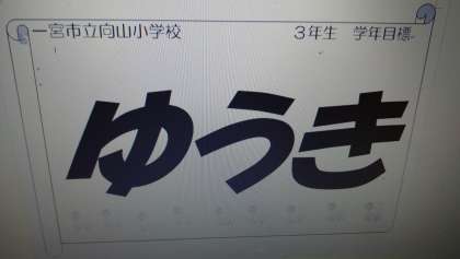 さて、3年生の学年目標を、「ゆうき」にしました。3年生全員があらゆる行動に勇気をもってほしいという願いを込めました。勉強することや新たなことに挑戦すること、友達に優しい言葉をかけることなどには勇気が必要です。みんなも、勇気をもって行動してみてください。