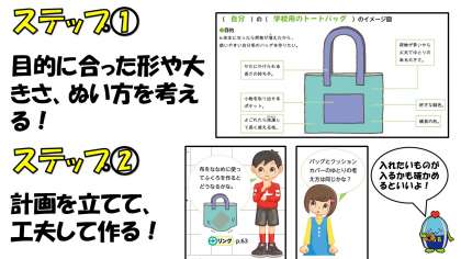 家庭科では、「ナップザック」を作ります。
