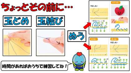 「玉どめ」「玉結び」「いろいろなぬい方」を練習しておいてくださいね。
