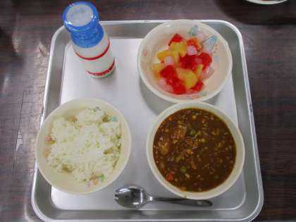 給食では、いろいろなゼリー和えがありますが、今日は6月が旬のさくらんぼのゼリー和えです。