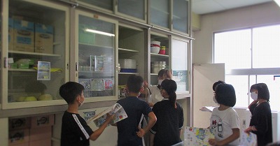 残念ながら、調理実習はしばらくできないけれど、今日は、グループに分かれて、家庭科室の中をたんけんして、調理に使うものの名前と場所を確認しました。