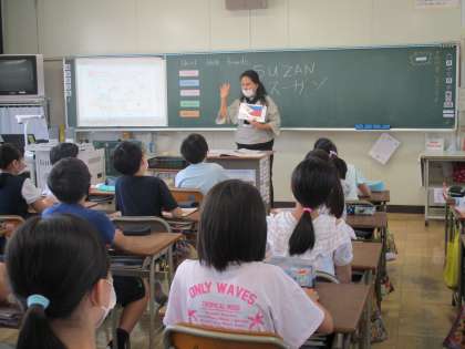 また、Unit1で歌っている「Nice to meet you」という曲は、休み時間中にも自然と口ずさむ子が多く、みんな大好きな曲です。歌うことを通してあいさつができるようになり、「How do you spell your name?」と相手の名前のつづりを聞く発問もできるようになってきました。