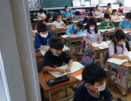 国語の授業の様子です。国語辞典の使い方を学んで、言葉の出てくる順番について考えました。休み時間にも辞書を引き、調べた言葉に付箋を貼るなど意欲的に学習する様子が見られました。