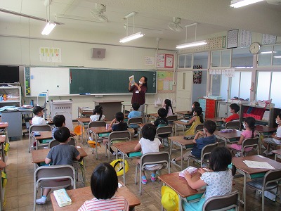 きょうは はじめての えいごの じゅぎょうが ありました。 スーザンせんせいと いっしょに じこしょうかいや びんごげえむを しました。 たのしくえいごで はななすことが できました。