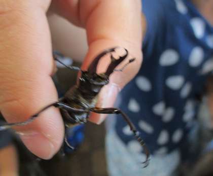 家でクワガタを育てている子が、ノコギリクワガタ、ミヤマクワガタを持って来てくれました。ミヤマクワガタはなかなか見られない種類のようです。
