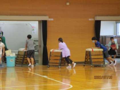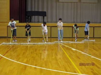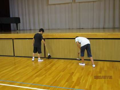 体育委員会では、体育館のモップがけや道具の整理整頓をしました。