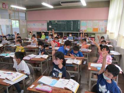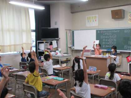 算数では、10より大きい数の学習を進めています。「10といくつ」ということを考えて問題を解きました。先生役になり、自分たちで問題を解き合うことで、意欲的に取り組みました。