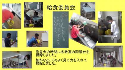 給食委員会は、今日は委員会の時間に各教室の配膳台を掃除しました。