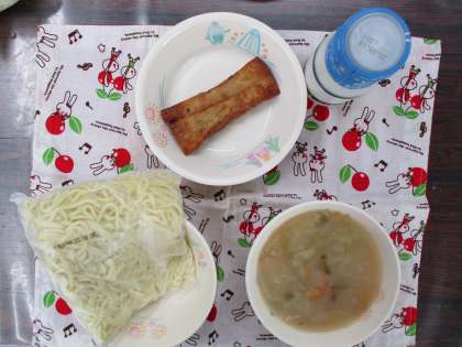 今日の和風豚骨ラーメンには、キャベツが入っています。