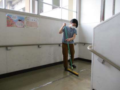 清掃ボランティアのみなさんが、校内の廊下や階段をきれいに掃除してくださいました。