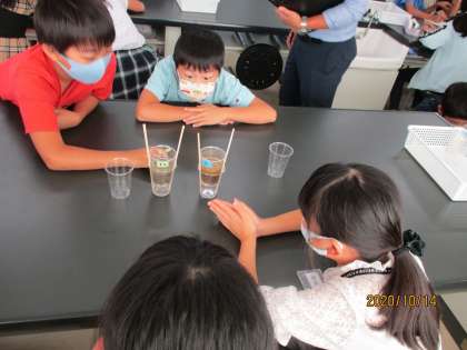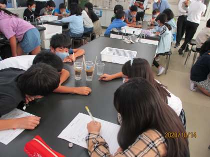 みんな目を輝かせて実験をしていました。