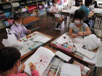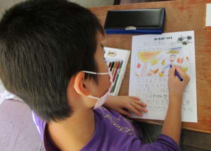 たくさんのどんぐりや落ち葉を拾い、学校では見つけたものや思ったことをワークシートにまとめました。