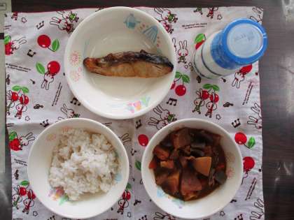 今日のおでんは、豚肉、はんぺん、こんにゃく、さといも、だいこん、にんじんを赤みそで煮込みました。