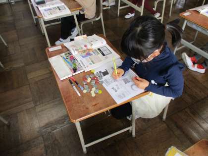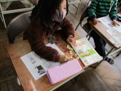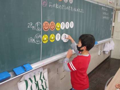 今まで習ってきた大きな数を生かして、お金の出し方を学習しました。一番わかりやすく出す方法や、10円玉がなかったら、1円玉だけだったらなど、同じお金でも出し方を変えて考えることができました。実際の、買い物でも今日の勉強を生かしていけると嬉しいです。